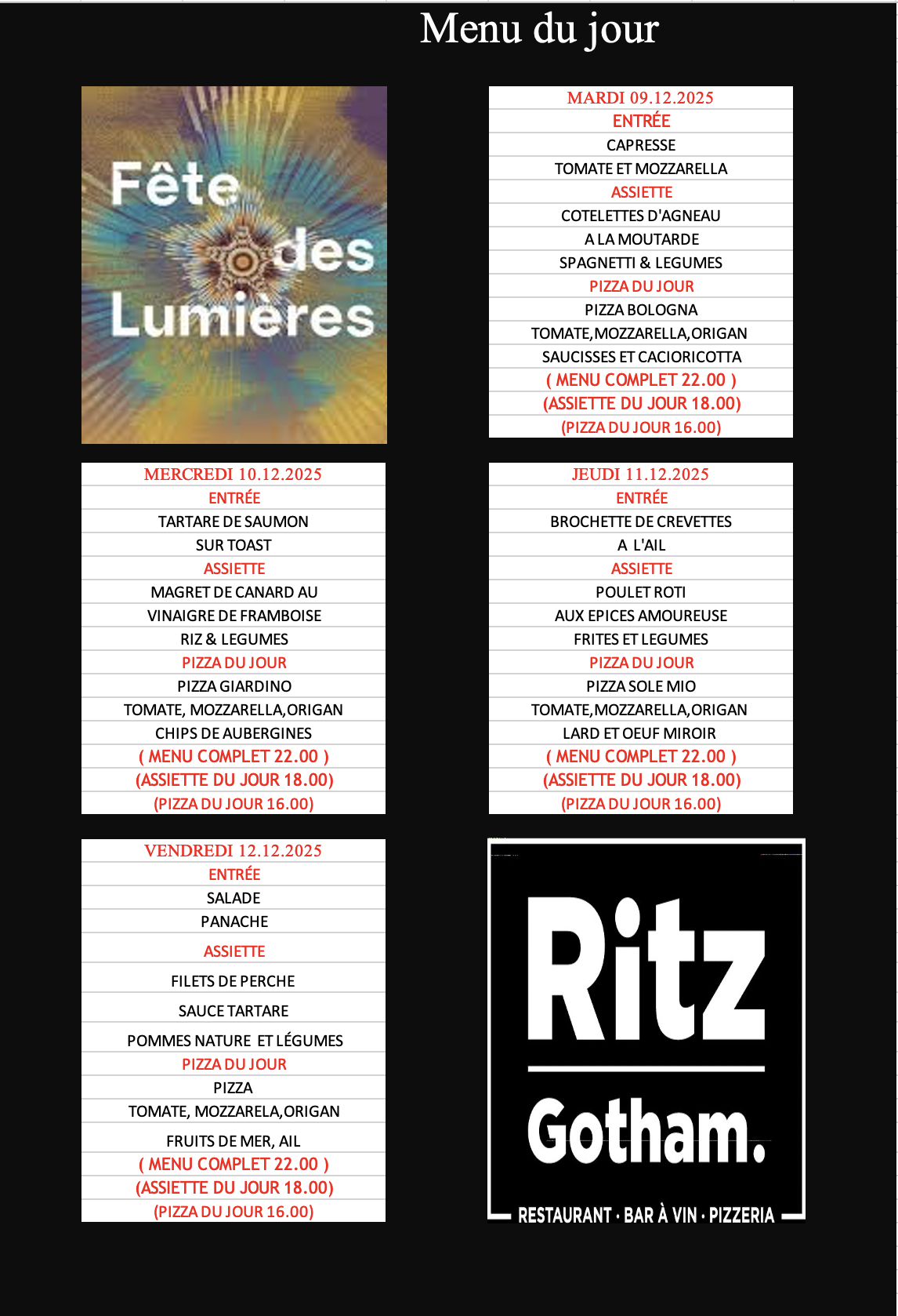 Les menus midi